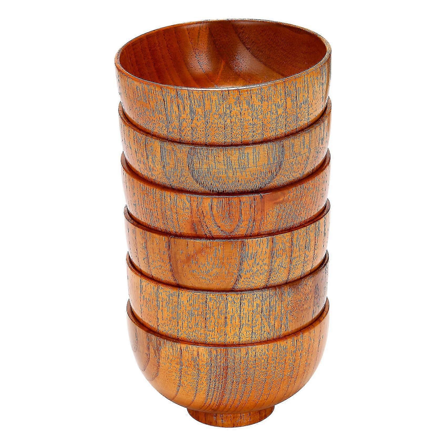 6 Pcs Wood Bowls Serving Tableware For Rice, Soup, Dip, Coffee, Tea, Decoration Wooden Salad Bowl K
