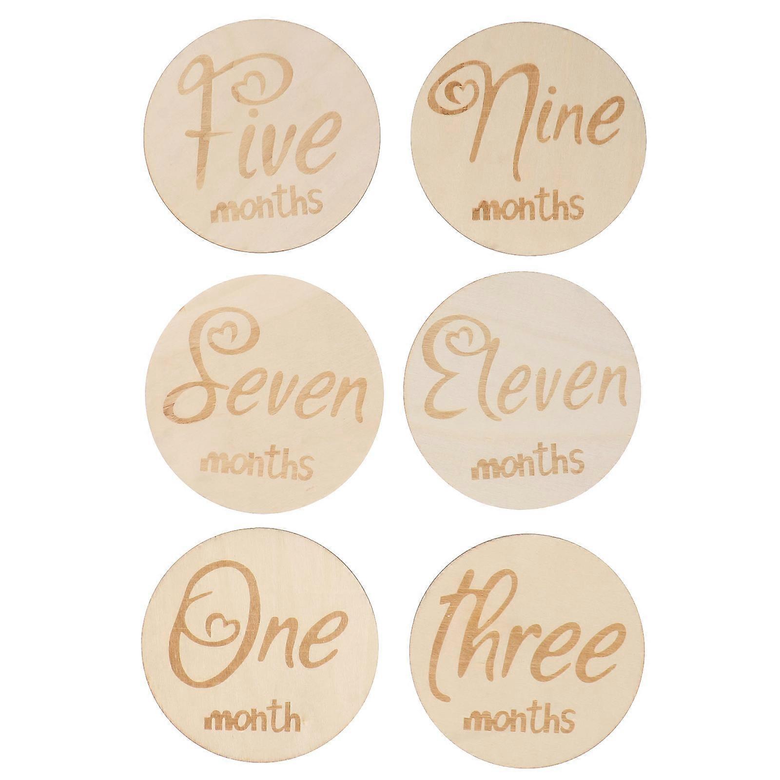 6pcs Wooden Milestone Cards for Monthly Growth Tracking, Single Sided Discs for Baby Photography and Special Moment Celebrations