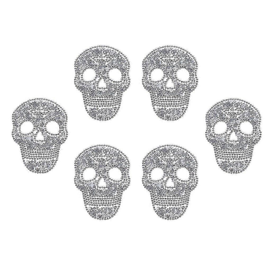 6pcs Bling Skull Head Rhinestone Appliques Ironsew On Hat Bag Clothes Patch
