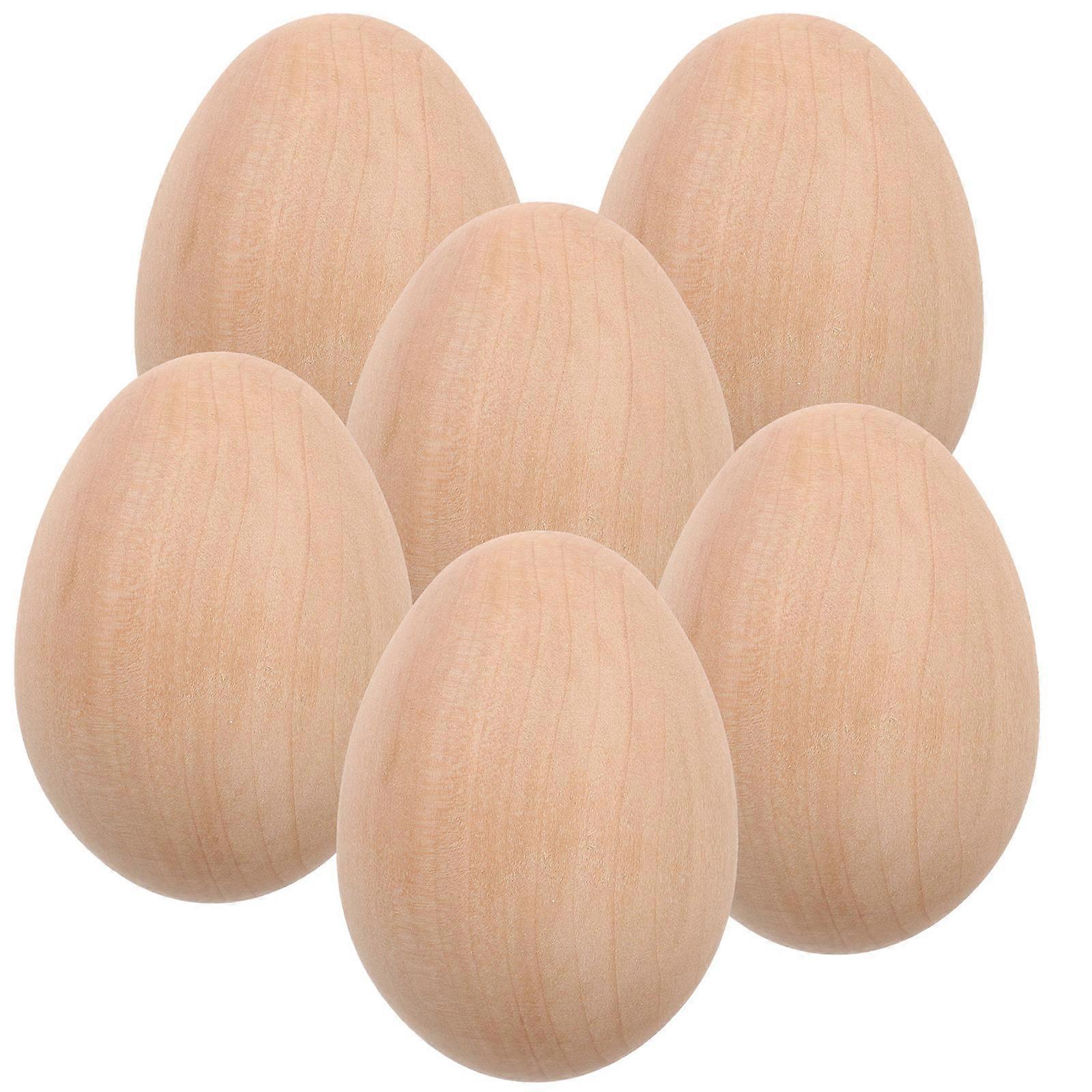 6Pcs Unfinished Wood Eggs for DIY Crafts Safe Painting Decorate Easter Eggs Khaki