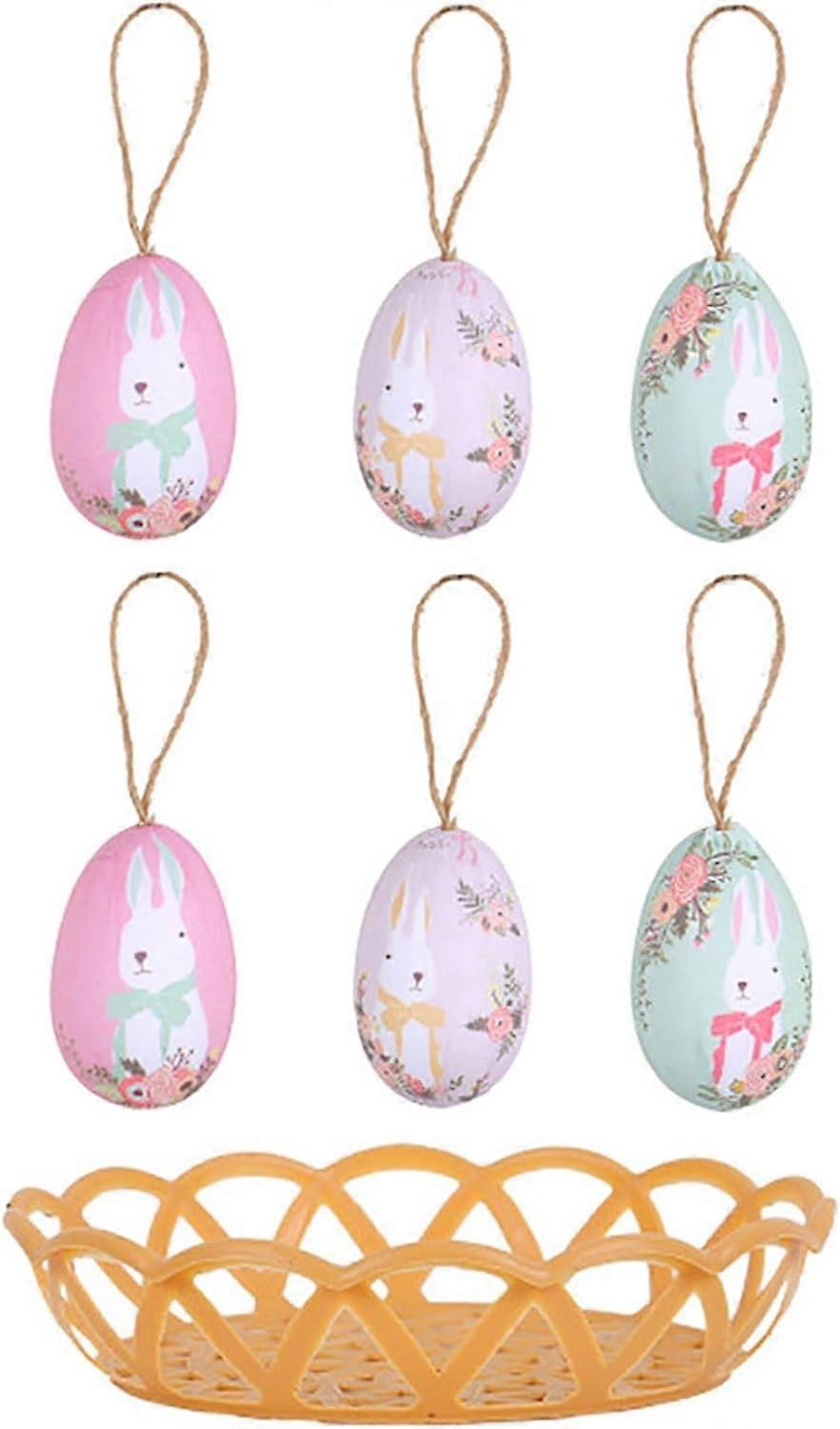 6pcs Easter Hanging Eggs with Woven Basket, Colorful Plastic Eggs Gift Tree Ornaments Decor for Christmas Birthday Party School Home Office Decoration