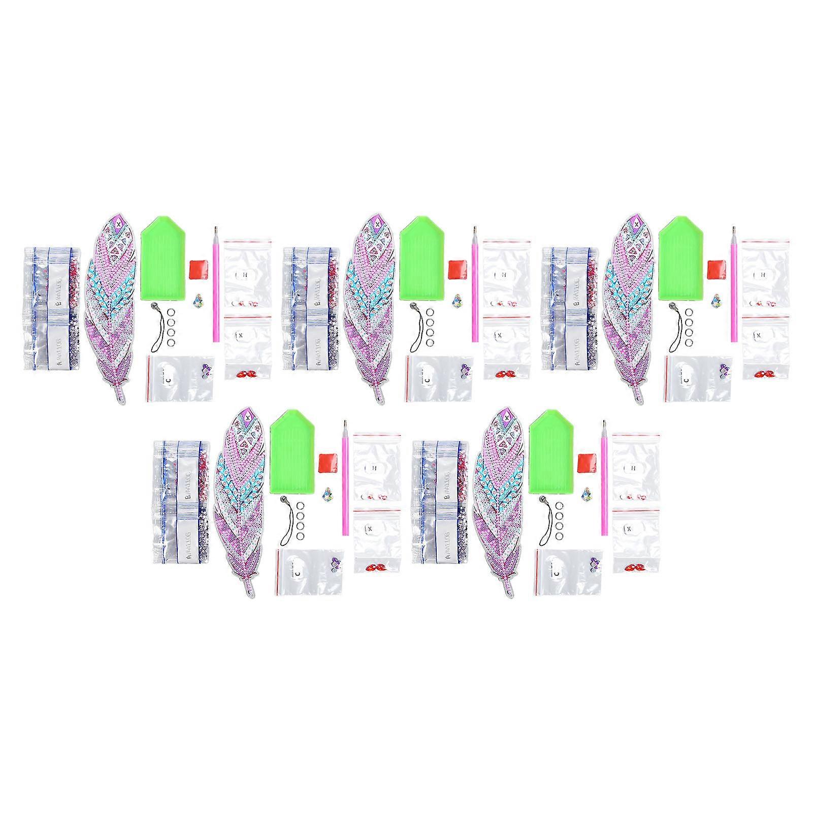 6Pcs Rhinestone Painting Feathers Assorted Styles Eye Catching Odourless Bookmark Rhinestone Kit for DIY Decoration