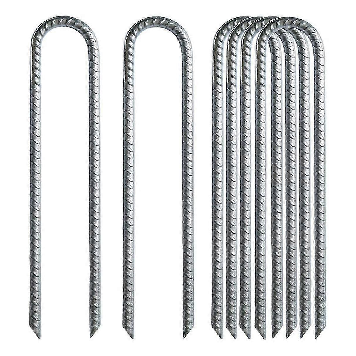 6Pcs Garden Ground Rebar Stakes Tent Nails Galvanized Steel U Pegs Gardening Anchors, Heavy Duty Lan