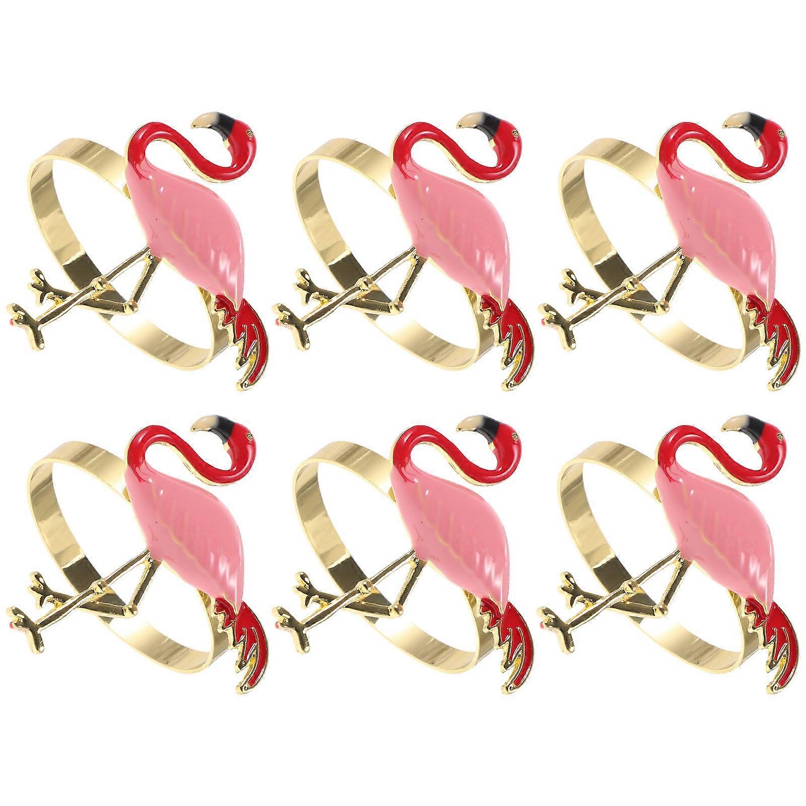 6pcs Flamingo Napkin Rings, Pink Floral Party Decoration, Exotic Beach Themed Napkin Accessories, Stylish Alloy Napkin Holders for Adults