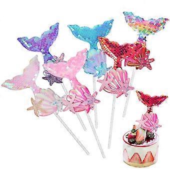 6pcs Mermaid Cake Picks Sequins Mermaid Cupcake Toppers Mermaid Cake Decorations