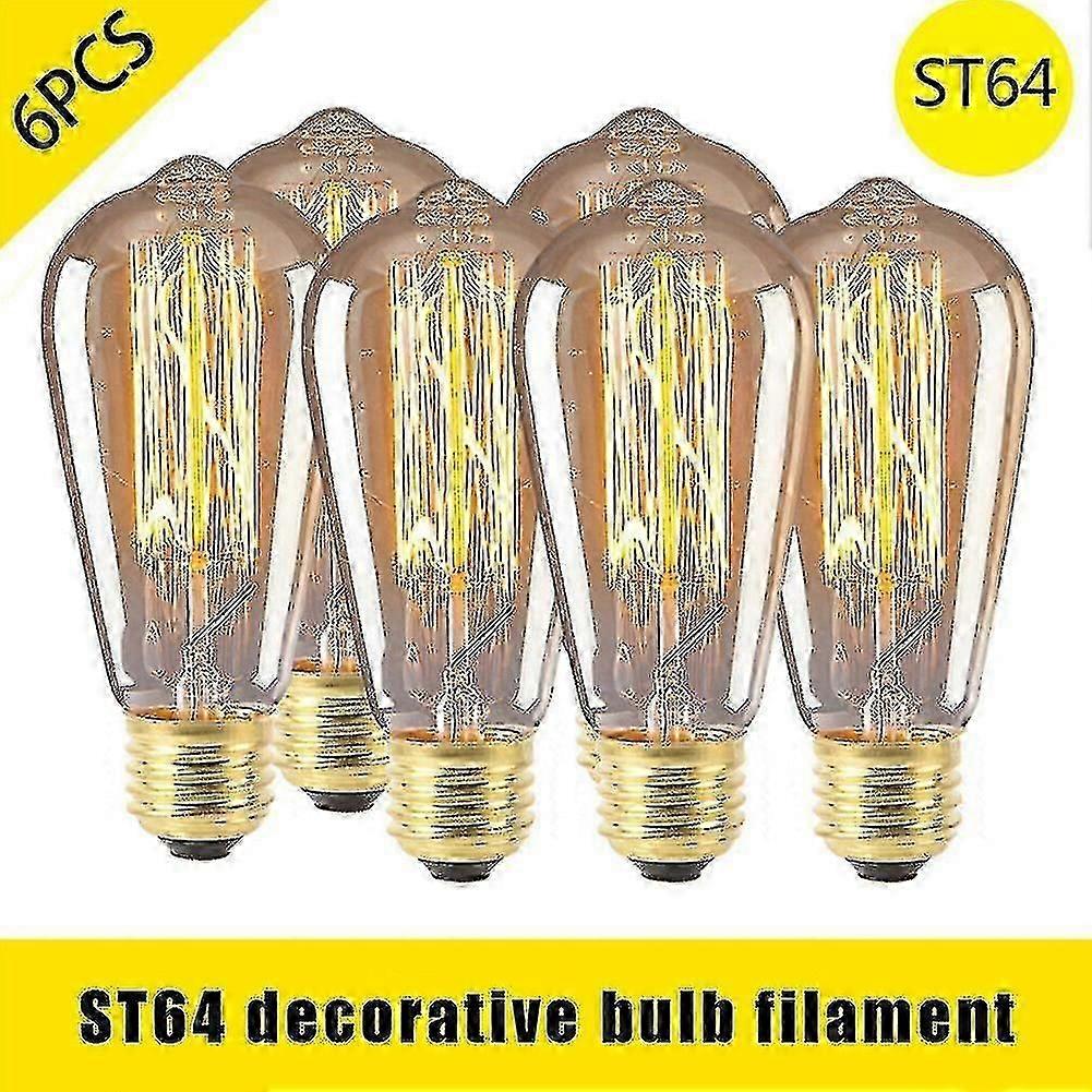 6pcs Vintage Retro ST64 E27 Edison Bulbs 40W Filament Light Bulb Warm White