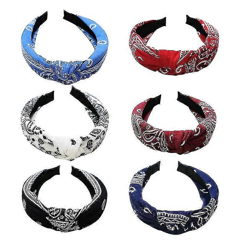 6pcs Vintage Boho Paisley Floral Headband Top Twist Cross Knotted Wide Hairband