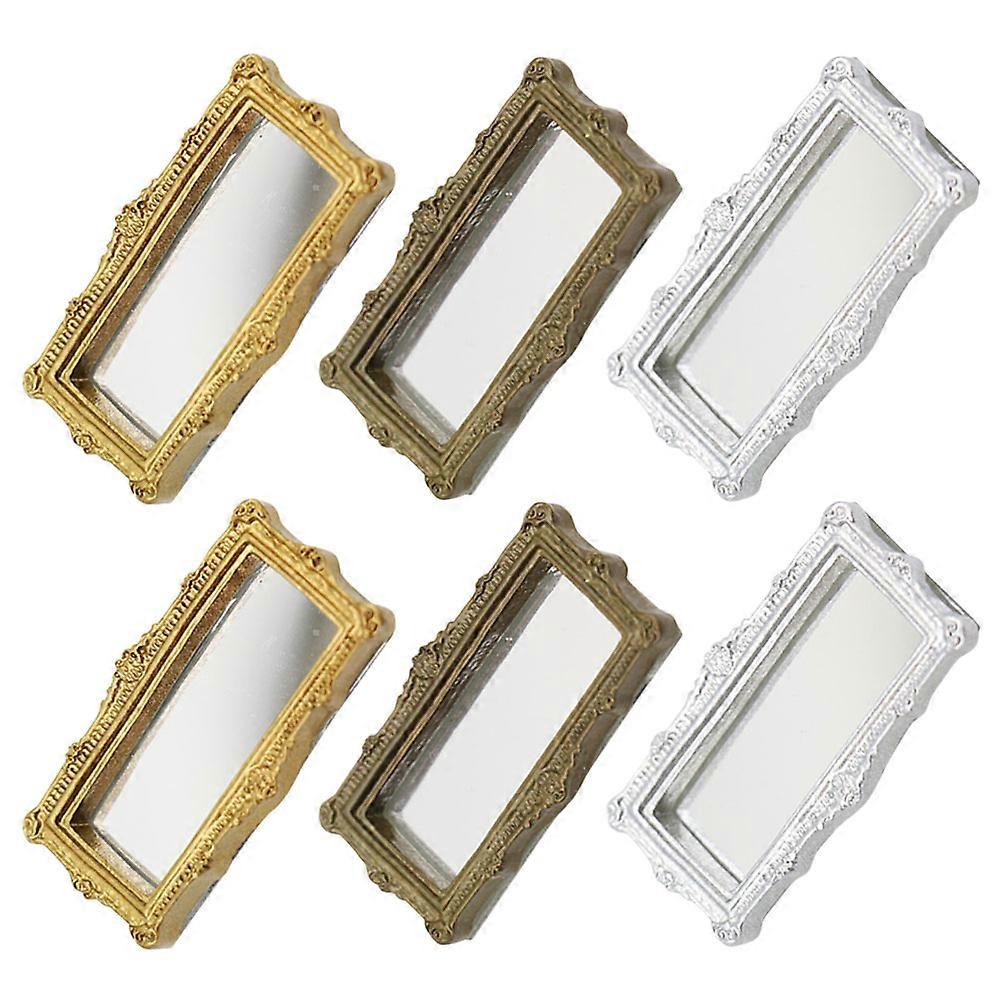 6pcs Dollhouse Miniature Mirrors, Antique Design for Living Room, Bedroom & Playroom Decoration, Enhances Hand Skills