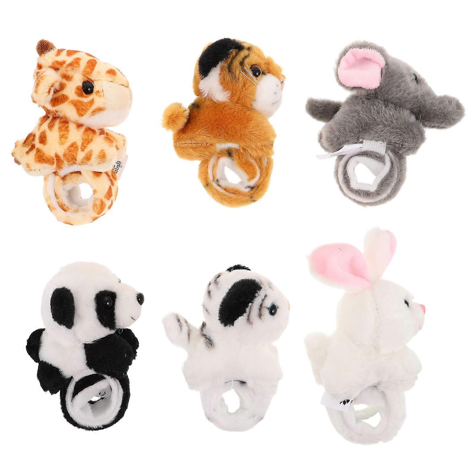 6pcs Adorable Animal Stuffed Slap Bracelets Plush Wrist Huggers Party Favors Jungle Birthday Classroom Rewards Souvenirs for Boys