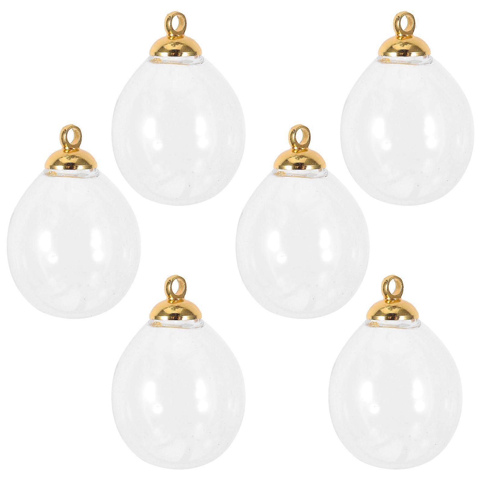 6pcs Mini Clear Glass Globe Bottles with Gold Caps – Small Egg Shaped Vials for DIY Jewelry, Wedding Decor, and Fillable Charm Jars for Dried Flowers