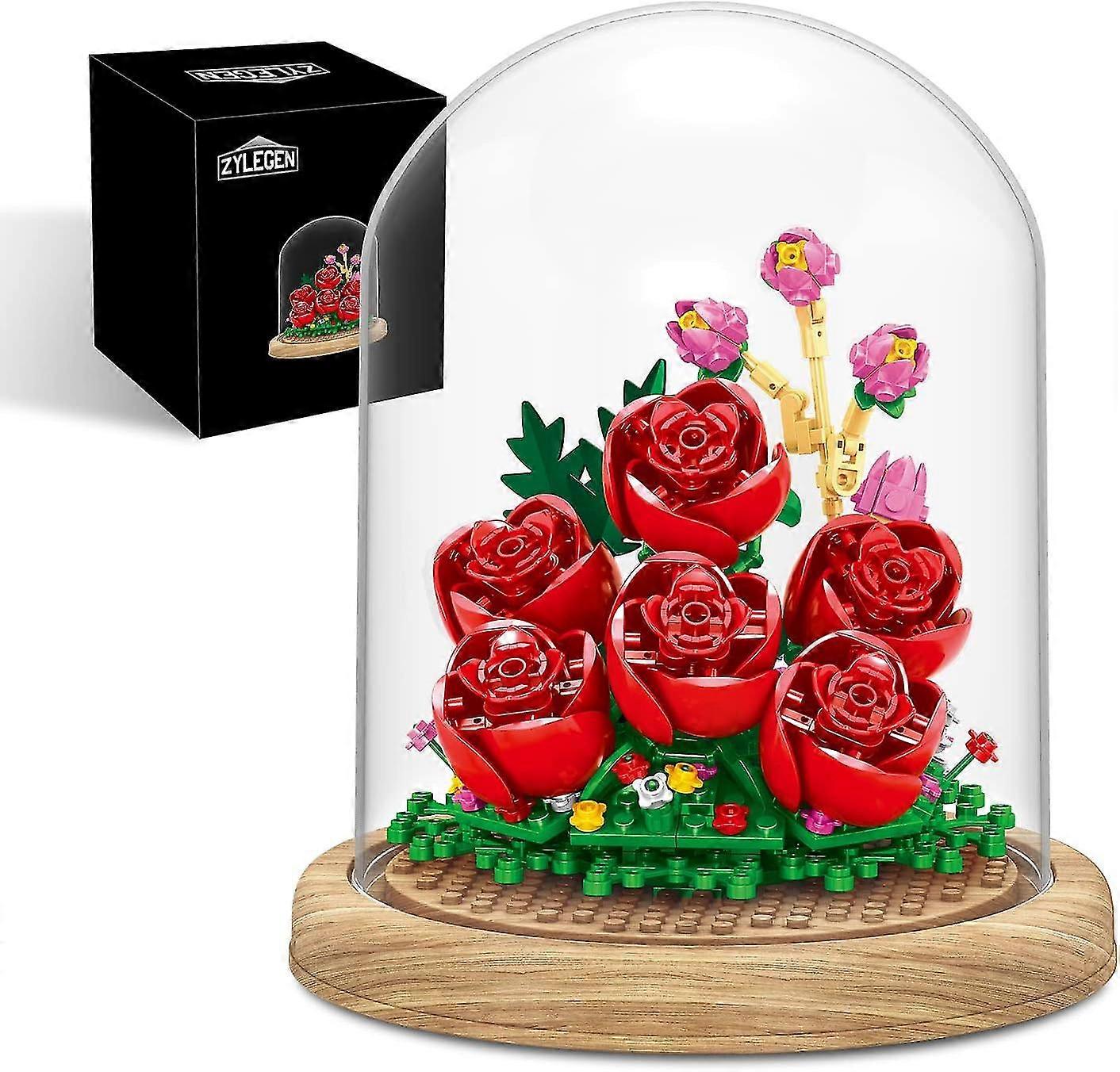 6pcs Rose Flowers Bouquets Building Toy With Dust Cover,mini Bricks Rose Set Gift For Home Dcor,botanical Collection,mother's Day Christmas Gift From