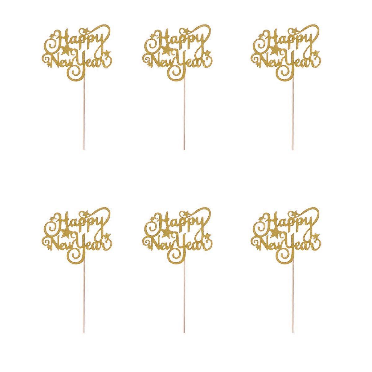 6pcs HAPPY NEW YEAR Letter Printing Fruit Insert Party Decorated Glitter Cupcake Toppers Paper Star Cake Decorating Toppers Party Favors
