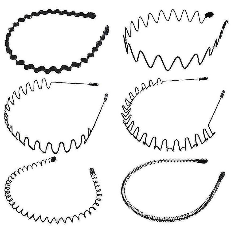 6pcs Metal Hair Band For Men Women's Headband, Unisex Non-slip Elastic Headband, Black Wavy Spring Sports Headbands Best Gift