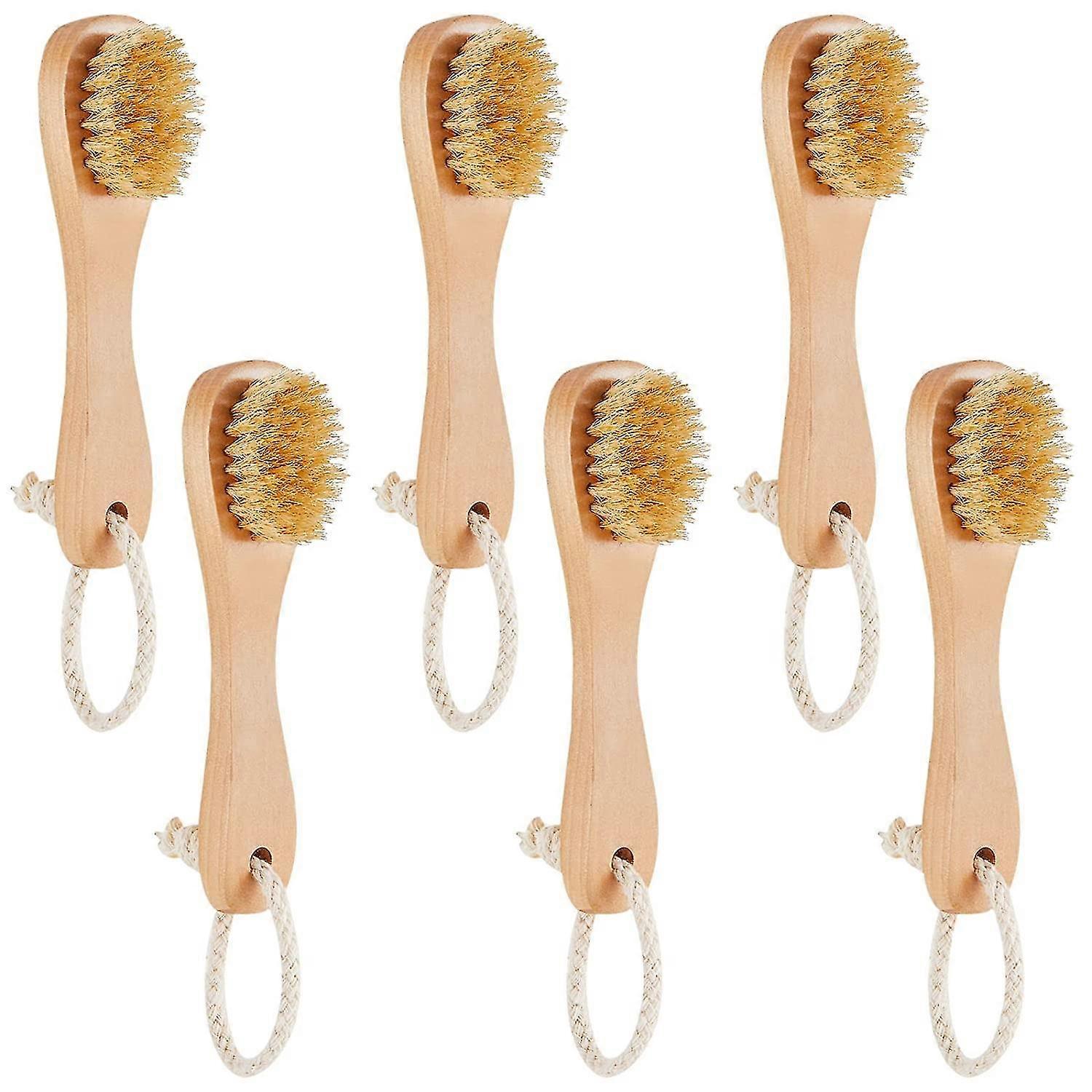 6 Pcs Natural Bristles Wooden Face Cleaning Brush Face Exfoliator Brush Dry Brush For Face Care Face Scrubber Exfoliator Wood Handle Facial Cleanser F