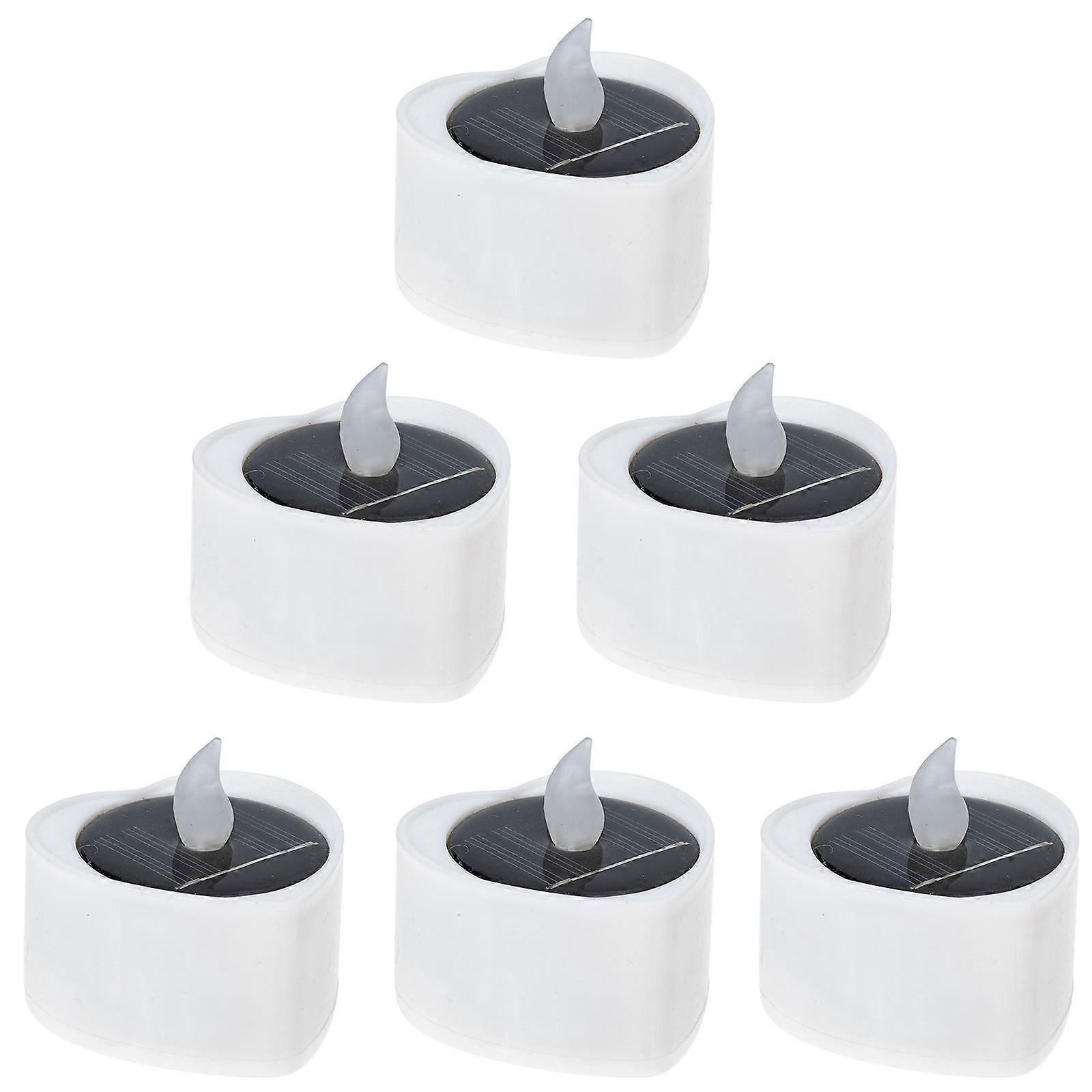 This outdoor decorative tealight is powered by order to save the electricity. This solar light can be used on lawn, fences, landscapes, pool, pathways, driveway, etc. Made of , can be used for a long time. This LED candle lamps feature the flameless and smoke-free design when using, very and practical. Features - Color: White -Material:Plastic, - battery - Size: 6.00X6.00X5.00cm/2.36X2.36X1.97in -Color of the light: Warm white -Solar Panel: 2V 45mAh -Battery: One AAA battery (300mAh 1.2V) -Working time: 8-10 hours -Protection Level: IP44 - The solar-powered tea light is fit for the decoration of birthday, wedding, proposal and home scene, outdoor garden. - Charging itself through sunlight at daytime, automatically turn on at nighttime, convenient to use. - workmanship, reasonable structure, professional and practical, can bring you convenience. - Solar tea light candle light is for both indoor and outdoor use, as the tealight is flameless and solar-powered. - It comes with the candle shaped and simple appearance design, which is versatile and multipurpose. Package list: 6 × Solar Tea Lights