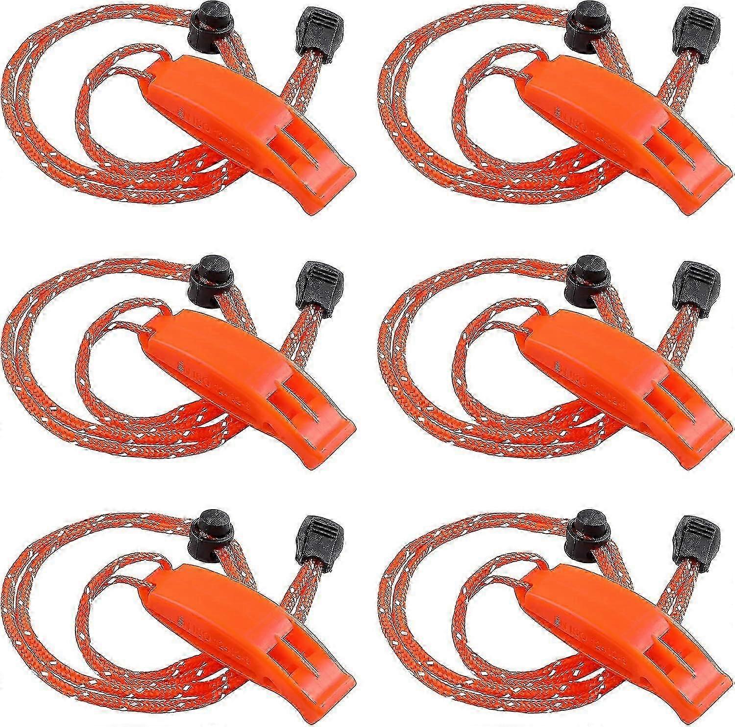 6pcs Safety Rescue Whistle With Adjustable Reflective Lanyard Eme