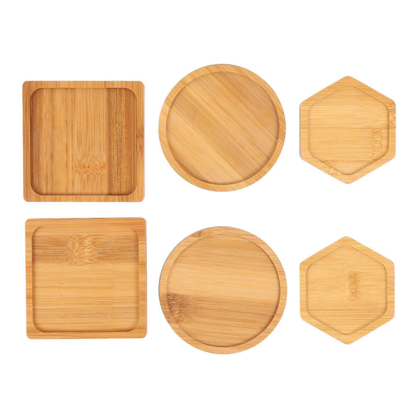 6pcs Bamboo Plant Saucers for Flower Pots – Durable Drainage Trays with Color and Stylish Design