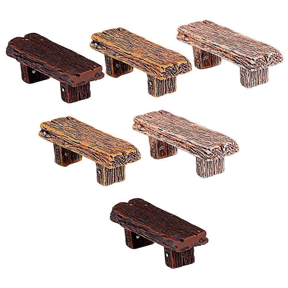 6pcs Mini Resin Stools Ornament, Imitated Wood Double Bench Model with Realistic Moss and Succulent Details, Vintage Style Decorative for DIY Micro