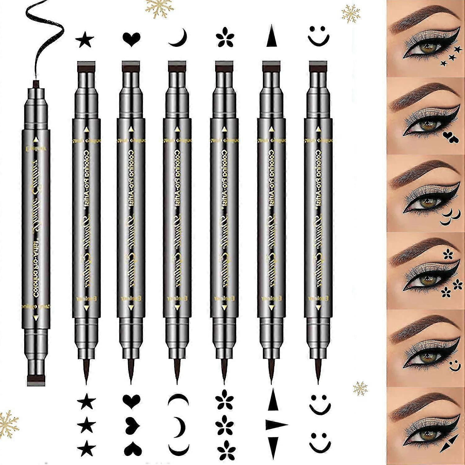 6pcs Double-sided Liquid Eyeliner Pencil Eyeliner Stamp Makeup,waterproof Black Liquid Eyeliner Pencil Long Lasting & Smudgeproof Eyeliner Tattoo Tool