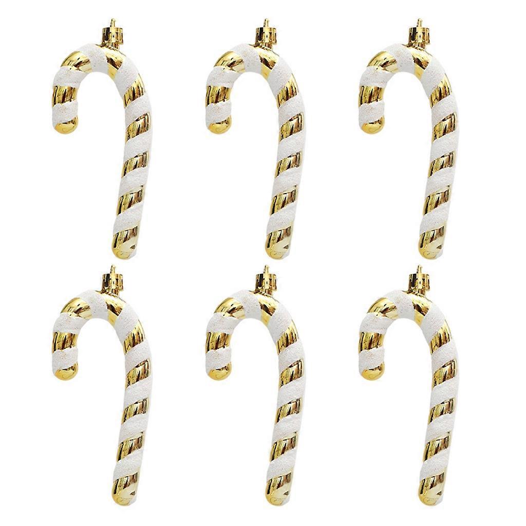 6Pcs Christmas Candy Cane Ornament Glitter Plastic Christmas Hanging Pendant