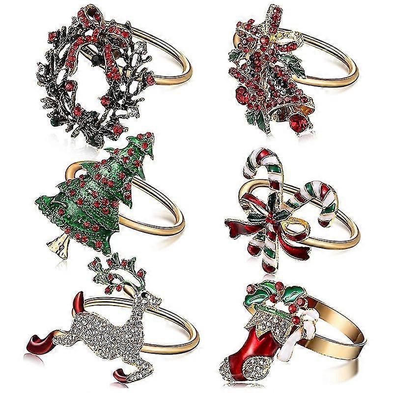 6pcs Christmas Napkin Rings Xmas Napkin Holder Rings Wreath For Holiday Party Dinner Table Decorati