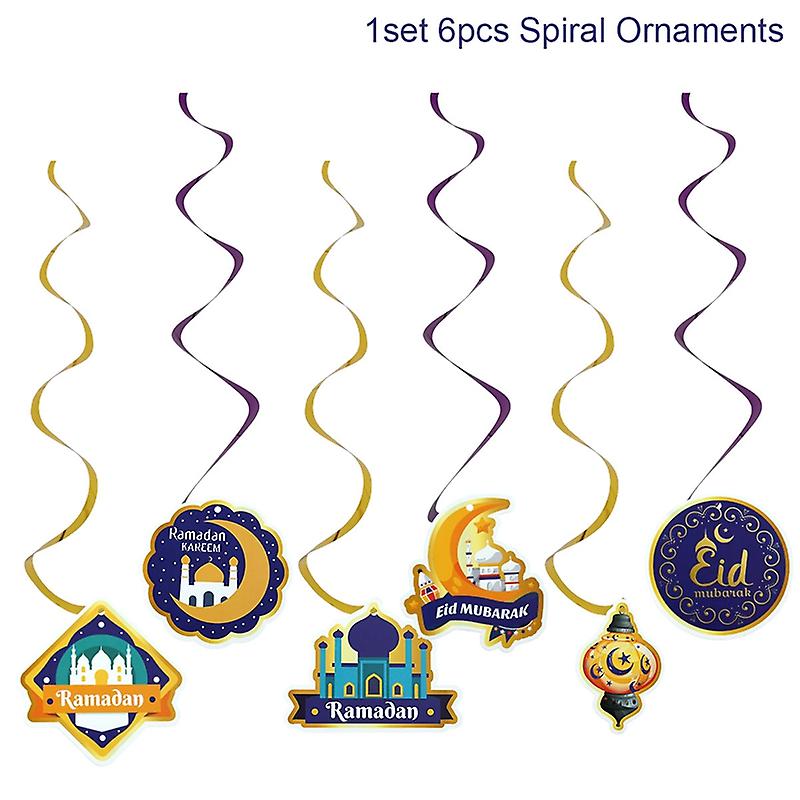 6pcs Eid Mubarak Spiral Banner Islamic Muslim Gold Swirl Eid Pendant Bunting Hajj Mubarak Festival Party Ramadan Home Decoration