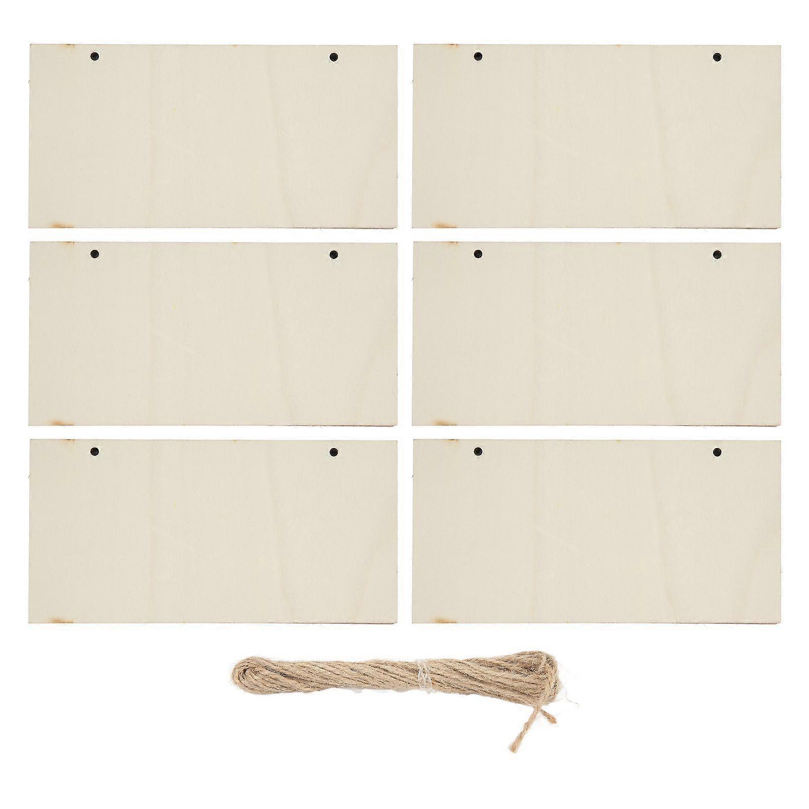 6pcs Blank Wooden Plaque Rectangle Decorative DIY Unfinished Wood Sign with Holes for Coffee Shop