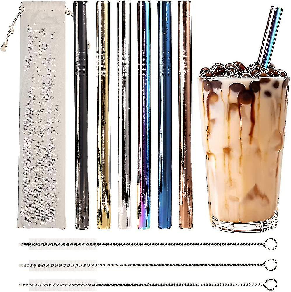 6pcs Bubble Tea Straws Stainless Steel Drinking Straws Metal Straw Colorful - 12mm Wide Straws For Boba Beads, With 3 Brushes And 1 Carrying Bag NIUNI