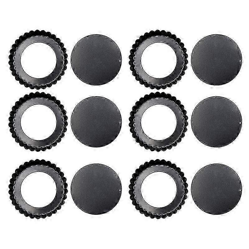 6PCS Removable Bottom Tart Pan Non Stick Coating Carbon Steel Black Quiche Pan for Kitchen Edition 0620