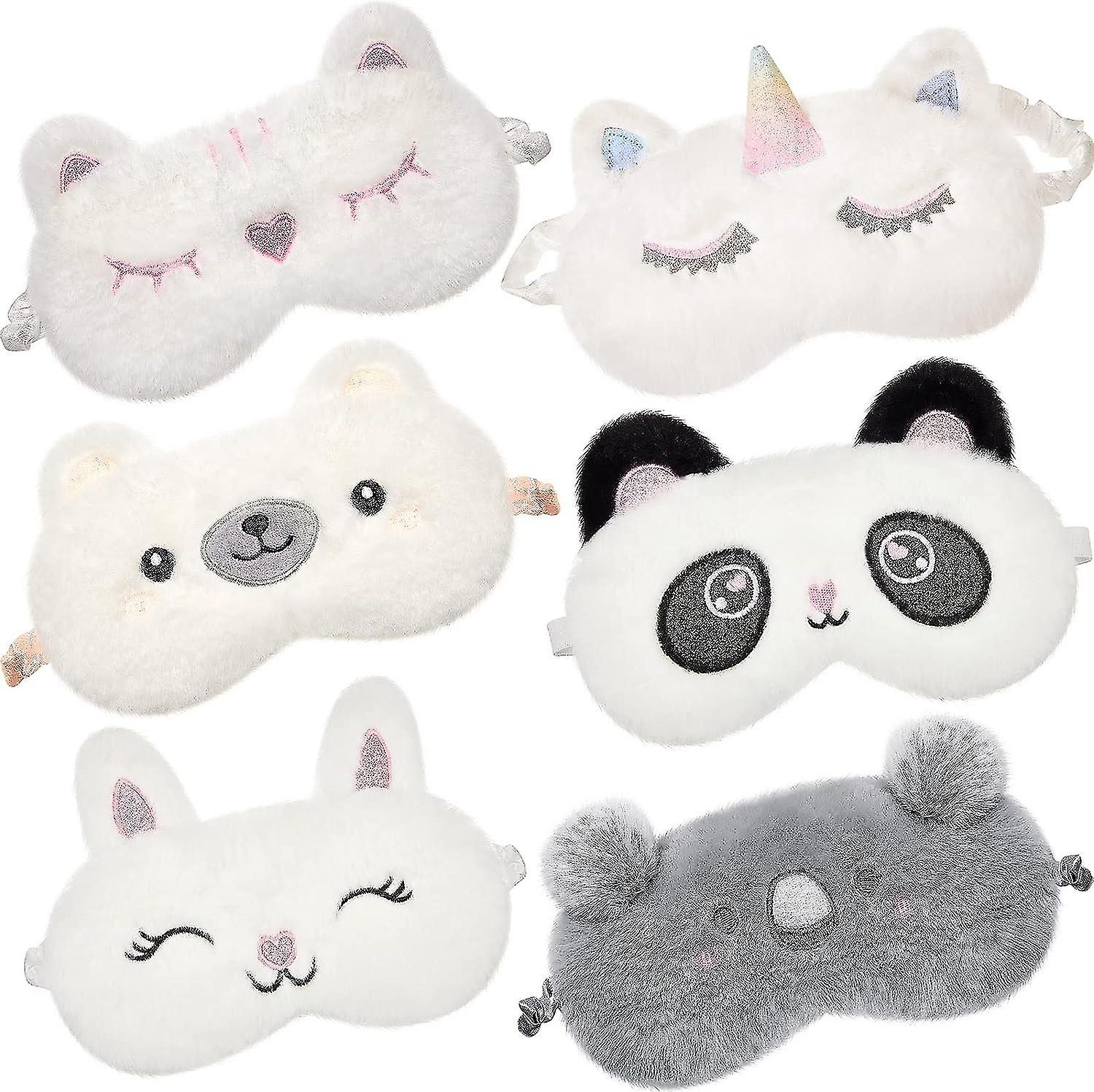 6 Pcs Kids Sleep Mask Cute Unicorn Animal Sleeping Eye Cover Funny Soft Plush Blindfold Eyeshade For