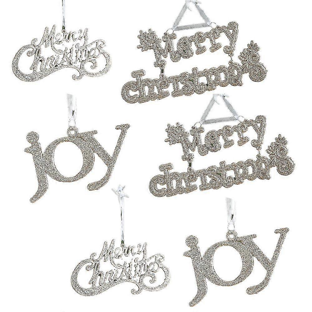 6 Pcs Christmas Word Sign Glitter Hanging Ornaments, For Window Tree Wall Home Decor