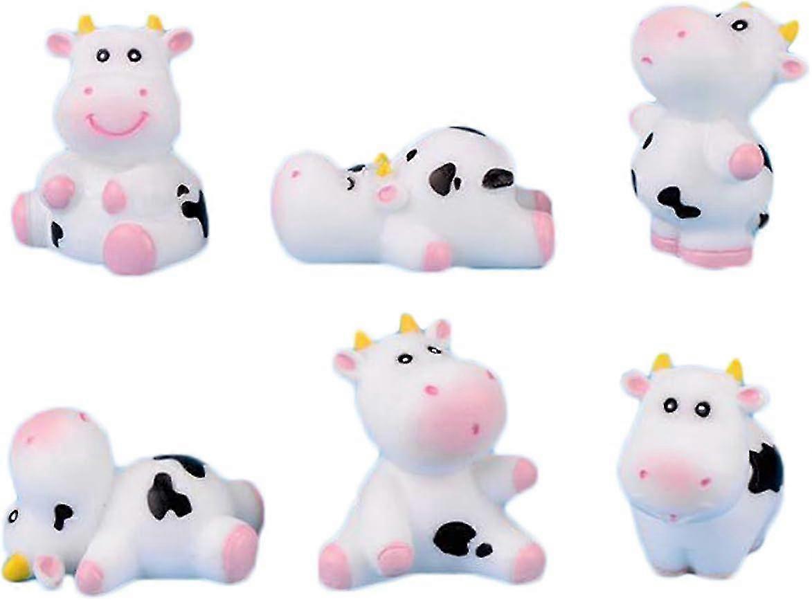 6 Pcs Cute Cow Animals Miniature Figurines, Cow Cake Cupcake Toppers, Miniature Cow Moss Landscape Diy Terrarium Crafts Ornament, Miniature Fairy Gard