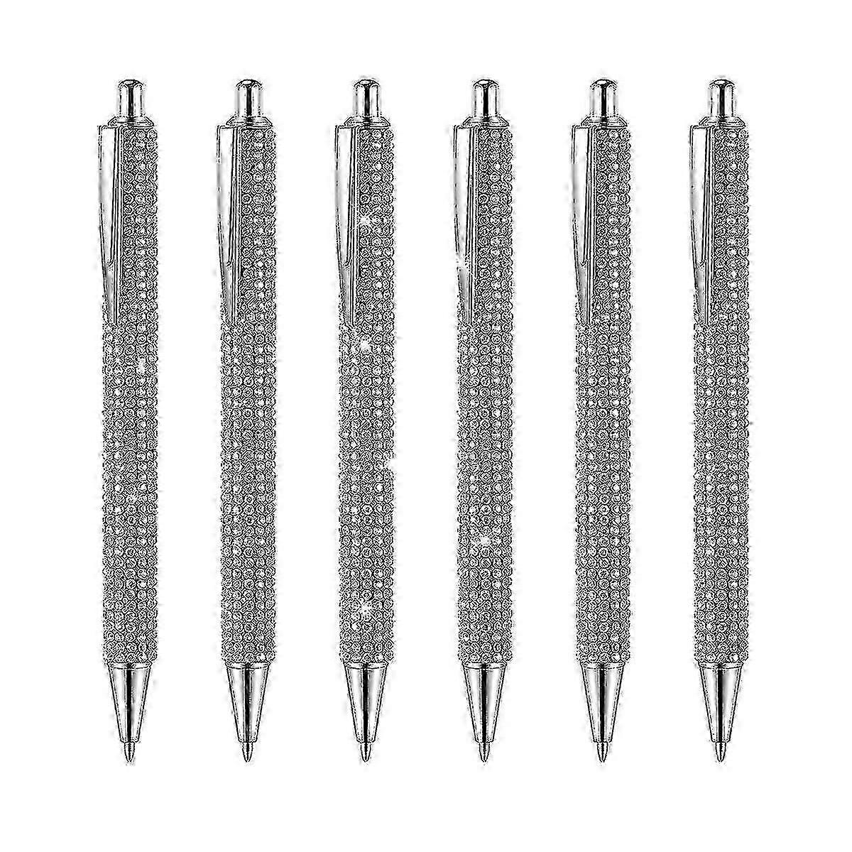6 Pcs Cute Pen Bling Diamond Christmas Rhinestones Gift Silver Metal Ballpoint Fancy Sparkly Crysta