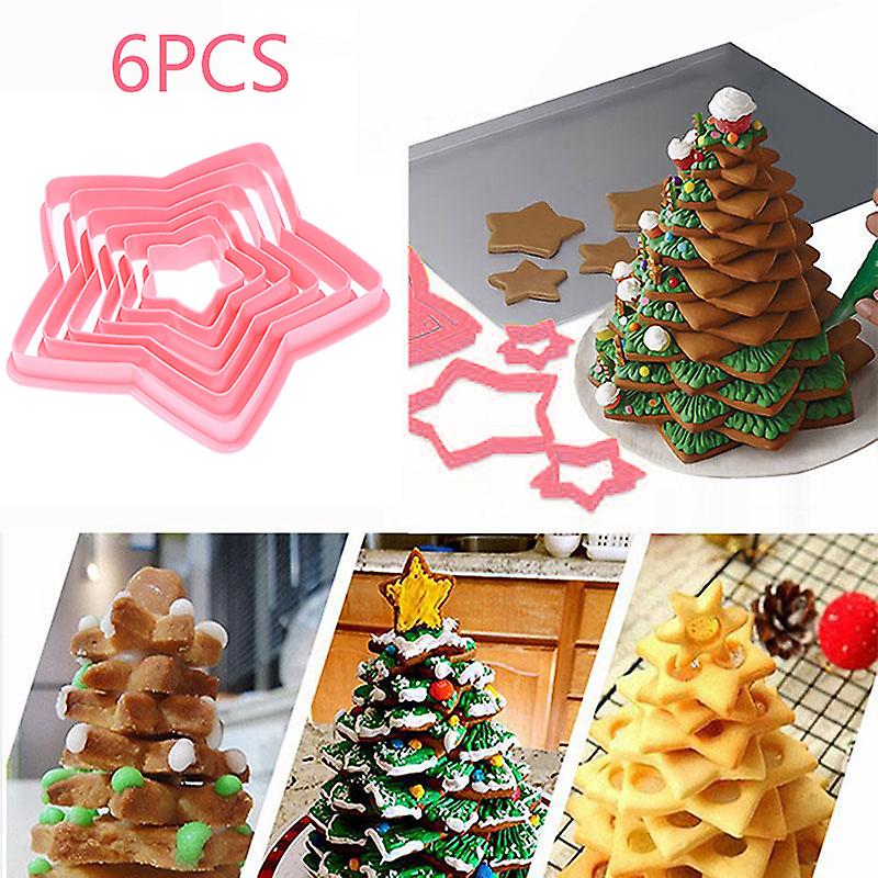 6pcs Sets Christmas Tree Cookie Cutter Mold Stars Fondant Cake Biscuit Moulds