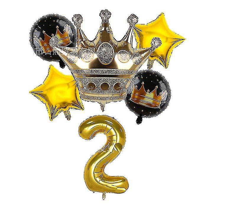 6 Pcs /set Gold Crown Number Foil Balloons Kid Adults Birthday Party Decor