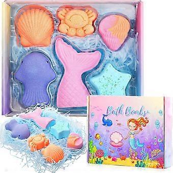 6pcs/Set Mermaid Themed Bath Bombs Set Body Stress Relief Exfoliating Moisturizing Fragrances Aromatherapy SPA Salt Ball