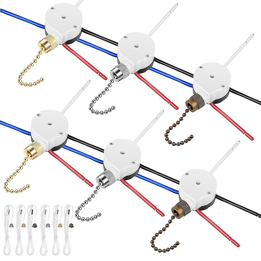 6 Pcs Ceiling Fan Switch Kit Ze-208s E89885 3 Speed 4 Wire Ceiling Light Fan Pull Chain Ceiling Fan