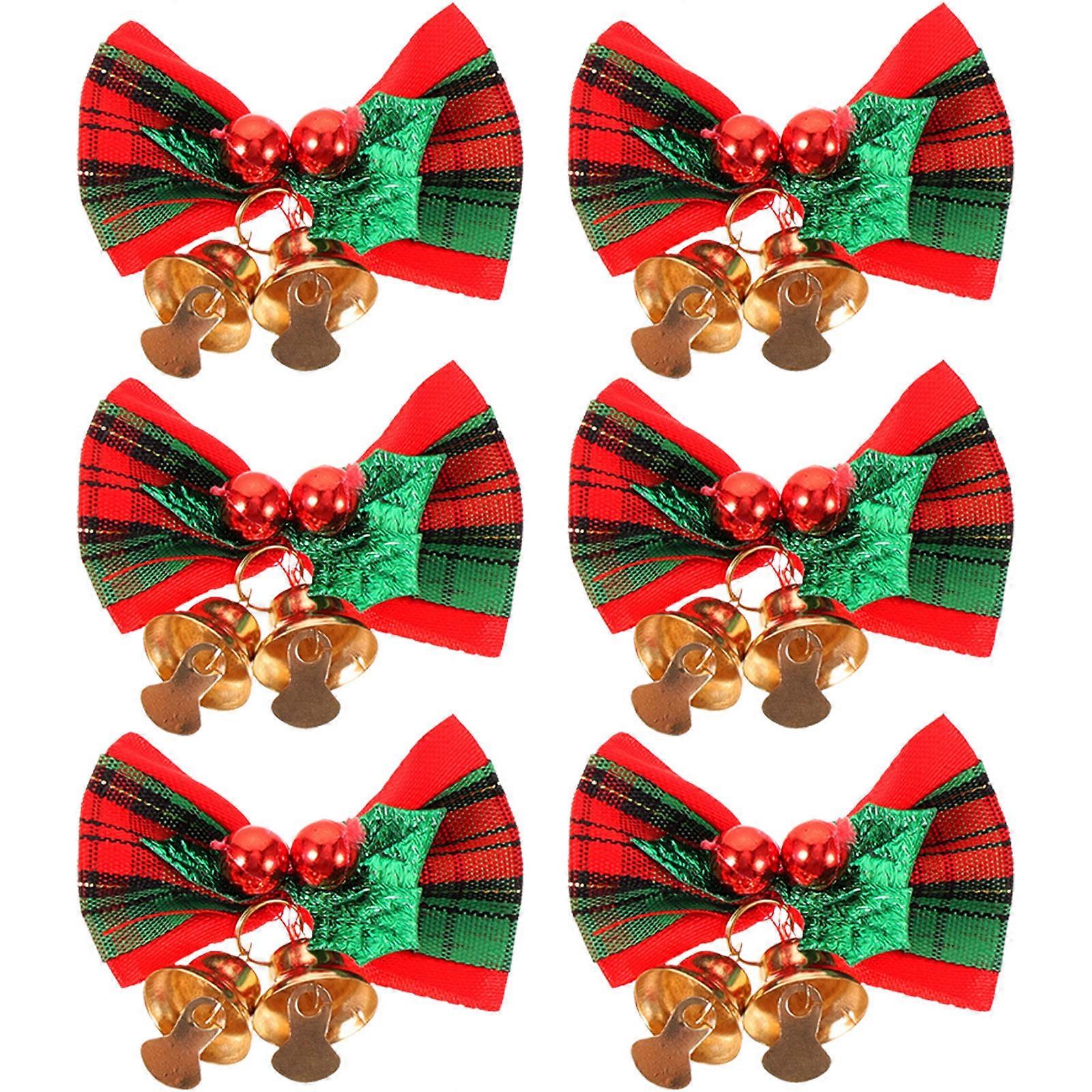 6Pcs Mini Bow Shape Christmas Bell Decor Shoe Accessory For Party Decoration Assorted Color Create Christmas Atmosphere