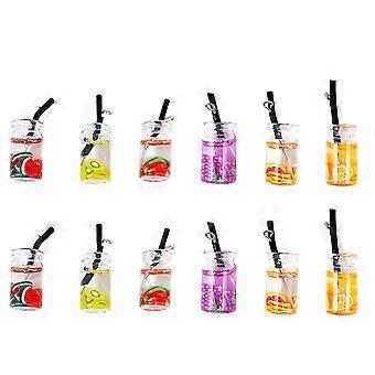 6PCS Mini Drink Bottle Charms, Creative Fruit Pendants for DIY Jewelry Making, Keychains, Earrings, Bag Ornaments, Wedding Crafts, 3D Resin