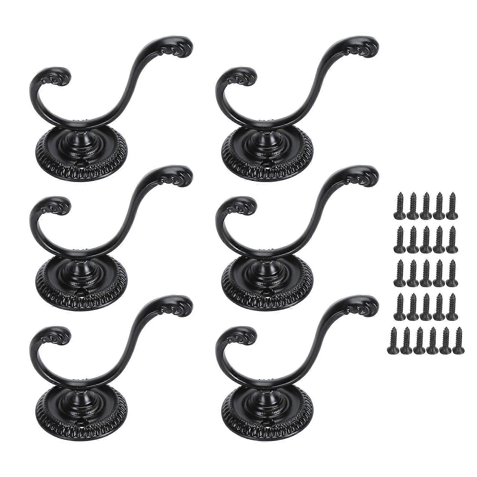 6PCS Coat and Hat Hook Zinc Alloy Black Color Wall Mounted 2 Claws Retro Coat Hook with 26 Screws