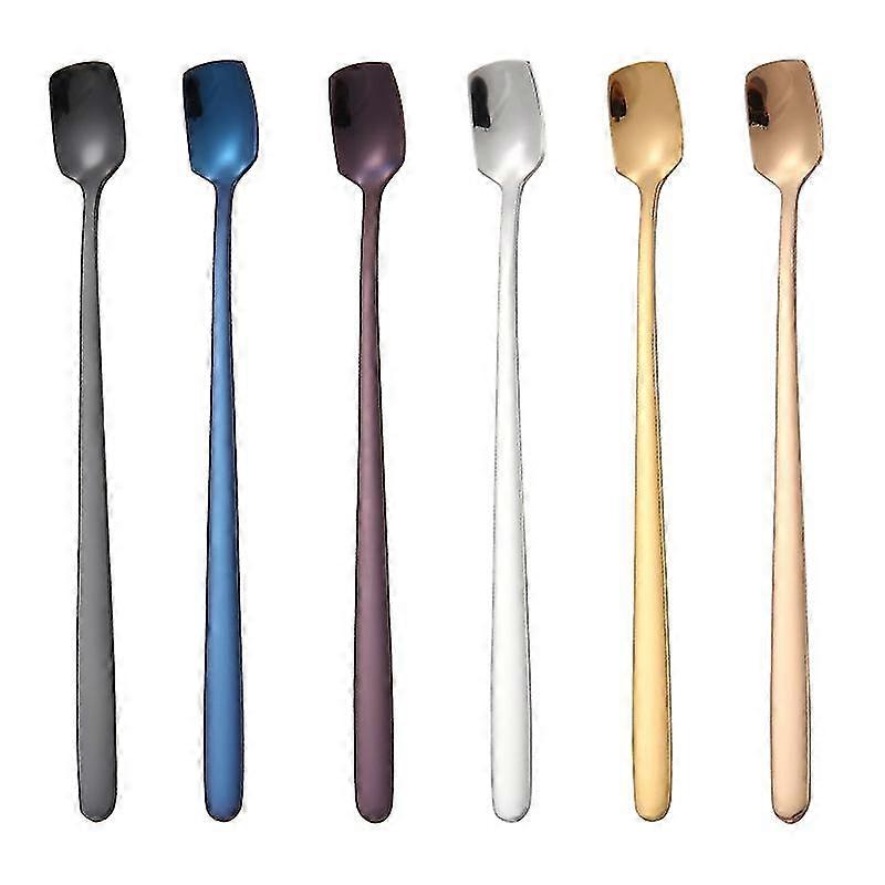 6pcs Stainless Steel Long Spoons,fruit Dessert Spoon, Long Handle Ice Spoon,square Dessert Spoons,color Square Head Stainless Steel Spoon Long Handle