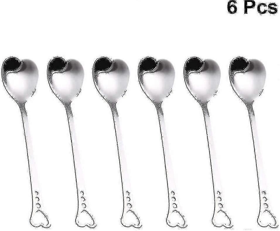 6 Pcs Stainless Steel Heart Spoons Dessert Spoons Coffee Spoons - Ri