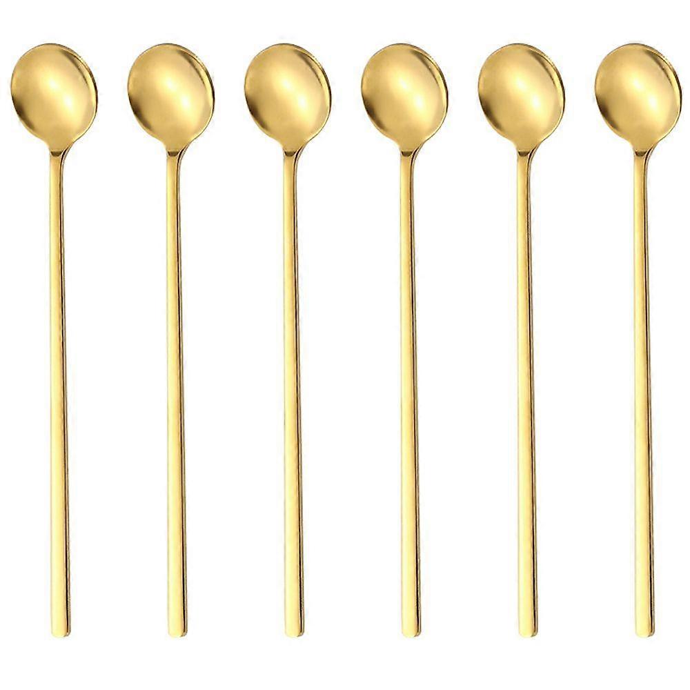6 PCS Coffee Spoons, Long Handle, Ice Tea Spoons, Long Spoons for Stirring, golden