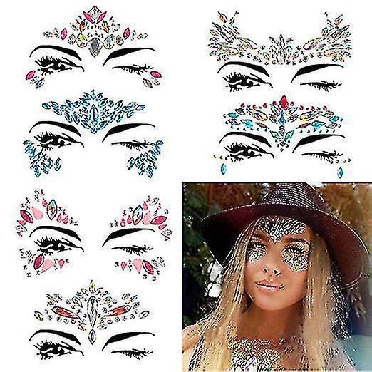 6pcs Face Stickers Forehead Stickers Chest Stickers Tattoo Stickers Set Rhinestone Stickers