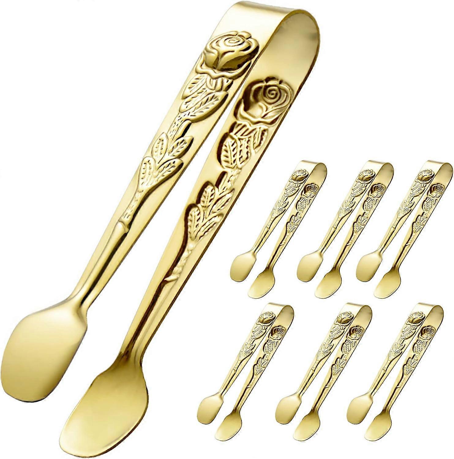 6PCS Mini Serving Tongs 4 Inches Small Rose Sugar Cube Tongs (Gold) Gold