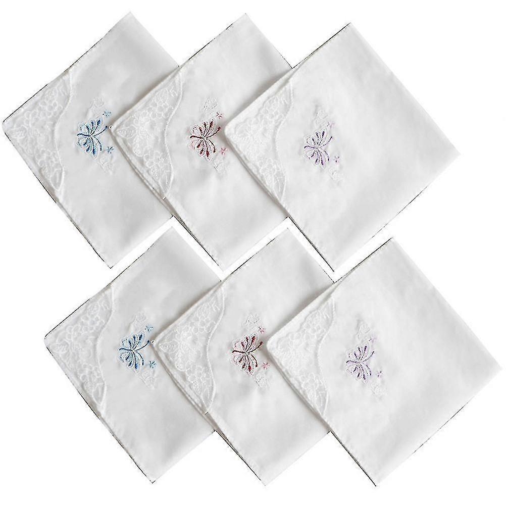6pcs Cotton Handkerchiefs Lace Handkerchiefs Butterfly Embroidery Handkerchiefs-YuJia