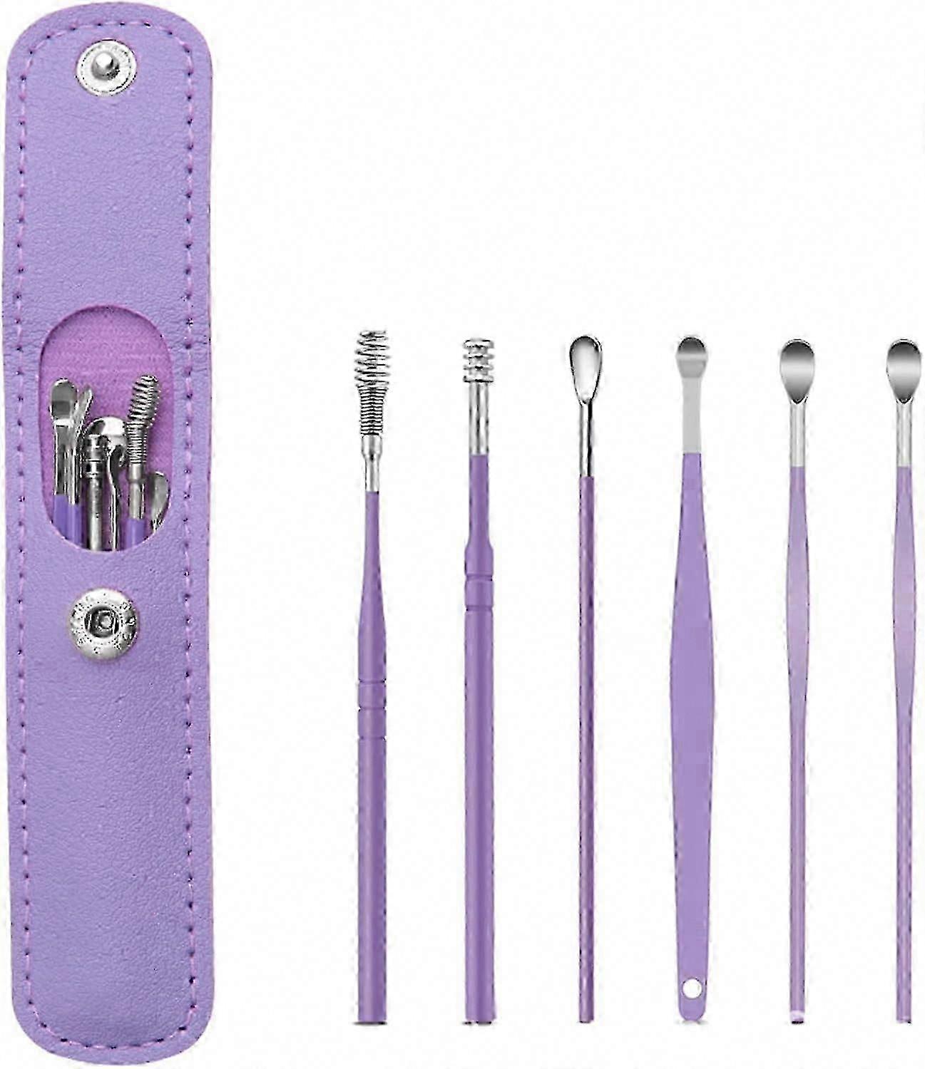 6 Pcs Stainless Steel Ear Spoon Ear Wax Cleaner With Leather Storage Case for Personal and Home Use Ear Cleaner Tools (Purple)