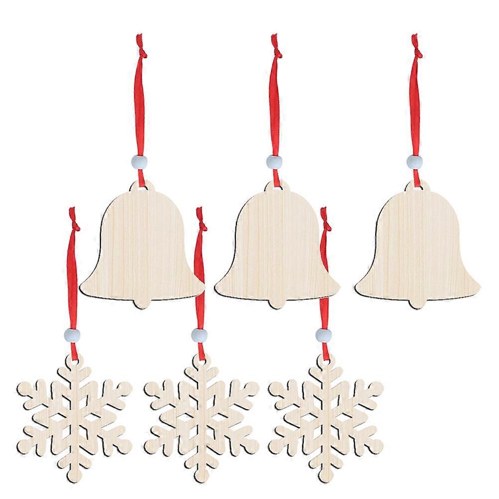 6 PCS Snowflake Jingle Bell Wooden Christmas Ornaments Christmas Tree Pendants Hanging Decorations Decorative Wood Tags Crafts Ornaments
