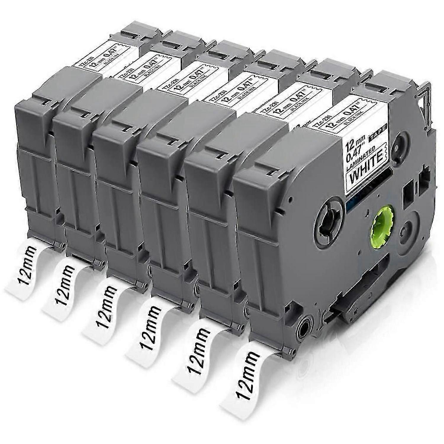 6 Pcs 12mm 0.47 White Tape Black Ribbon on White Background Printer Label Tape Compatible with Ribbon Tz231