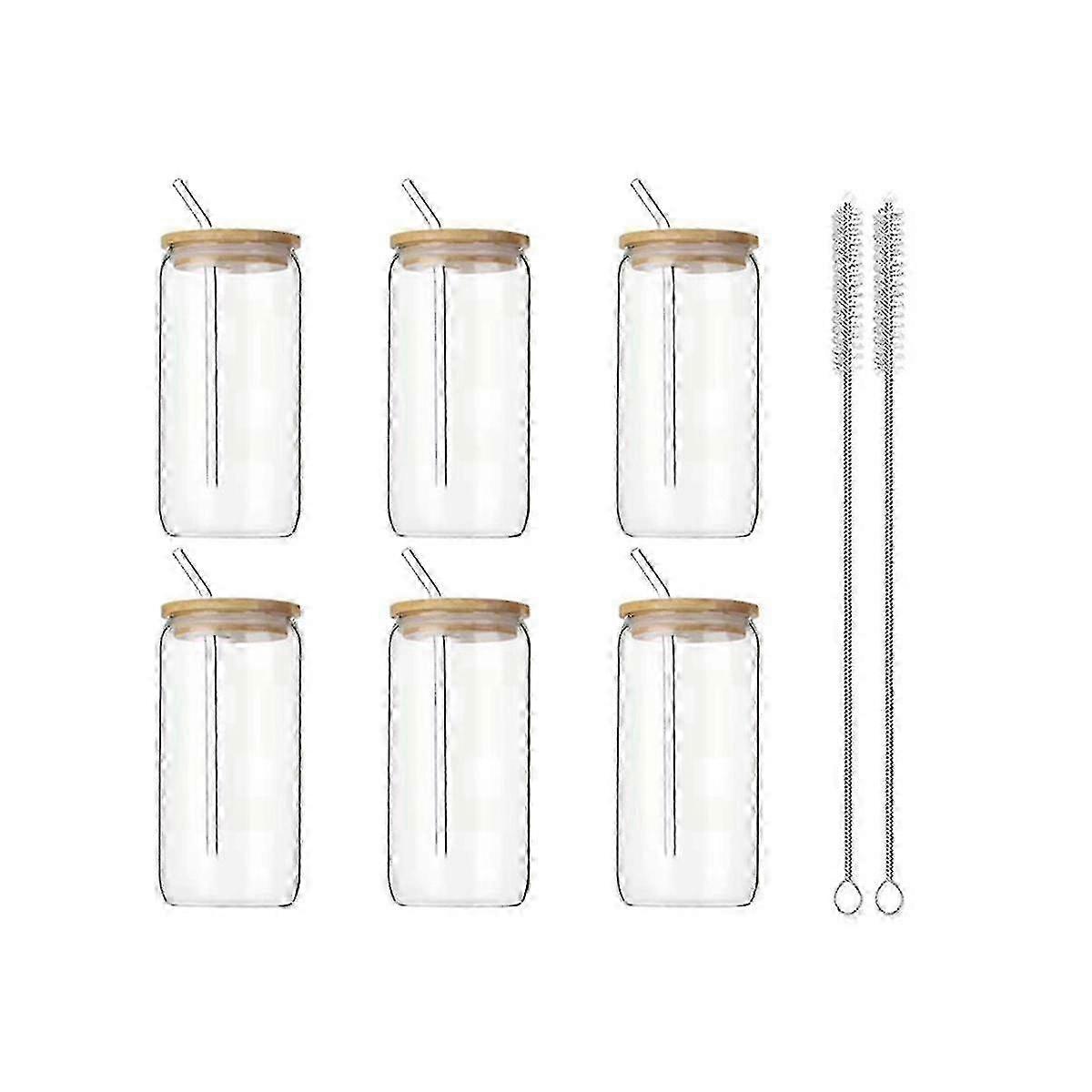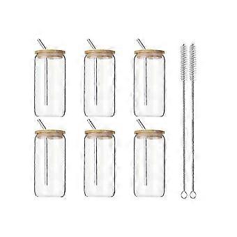 6pcs 16oz Glass Cups With Lids And Straws Clear Glass Cups For Coffee, Beer, Tea, Wine Glasses Beverage Utensils Durable-Yvan